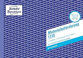 AVERY Zweckform 1110 Materialanforderung (A5 quer, 2x50 Blatt, mit 1 Blatt Blaupapier und 1 Durchschlag, zur Angabe von Menge, Bezeichnung, Kostenstelle, Verbrauch, Buchung u.v.m) weiß/gelb