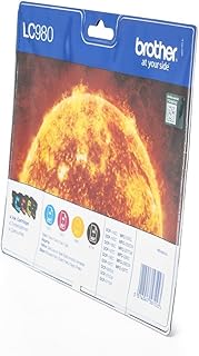 Brother Original LC980 /, für DCP-195 C 4X Premium Drucker-Patrone, Schwarz, Cyan, Magenta, Gelb, 1x 360, 3X 260 Seiten, 1 x 6 & 3 x 5,5 ml