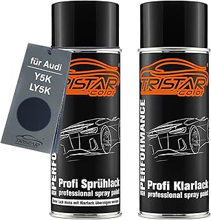 TRISTARcolor Autolack Spraydosen Set für Audi 9709 Zeltgrau Basislack Klarlack Sprühdose 400ml