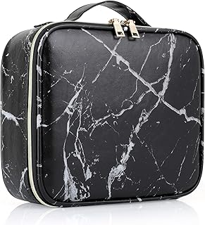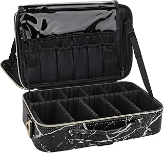 Relavel Make-up-Tasche, Make-up-Tasche, Organizer, Kosmetiktasche, Reise-Make-up-Tasche, Make-up-Tasche, professionelle Tasche mit verstellbarem Trenner, Schultergurt (schwarzer Marmor)
