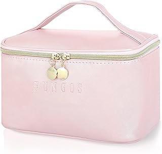 FUNGOS Make-up-Tasche, große Kosmetiktasche für Frauen, PU-Leder, Make-up-Tasche, Organizer, Reise-Make-up-Taschen mit Griff, wasserdichte Kulturbeutel, tragbare Make-up-Tasche, rose,