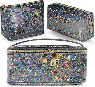 Make-up-Tasche aus PU-Leder, wasserdicht, Make-up-Tasche, tragbare Make-up-Tasche, Reisetasche, multifunktional, Kosmetik-Organizer-Tasche für Frauen und Mädchen, 3er-Pack, schwarz,
