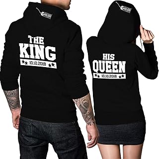 The King His Queen Pulli Datum Hoodie Geschenk für Paare, 2 Hoodies 1 Preis Idee