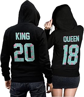 Pärchen Hoodie Set King Queen Pullover für Zwei Kapuzenpullover für Paare Paar Valentinstag Partner Geschenke Partnerlook Liebespaar Couple Mr Mrs Kapuzenpulli 1 Stücke