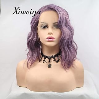 Xiweiya 35,6 cm kurze gelockte Perücken gemischt lila synthetische Lace-Front-Perücke für Frauen Haar Mädchen Perücken Seitenscheitel hitzebeständige Faser Kurzhaar Perücken lila Bob Perücken