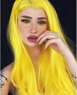 TANTAKO® Lange Synthetische Voll Haar Perücken Gerade Gelbe Lace Front Perücken für Frauen Cosplay Kostüm und Tägliches Kleid mit Perücke Kappe