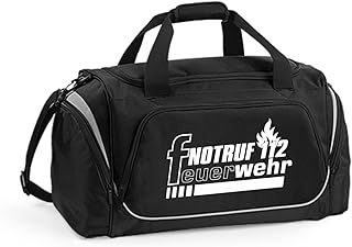 Hochwertige Feuerwehr Sporttasche - 62x32x30cm - 55 Liter - Tasche - Umhängetasche - Fitnessbag - Bag - Tragetasche - Reisetasche - Rettungsdienst - THW - Sportbag (Schwarz)