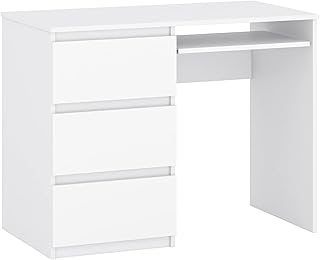 Schreibtisch Computertisch Bürotisch Arbeitstisch PC Tisch mit Tastaturauszug, 3 Schubladen von Links/Rechts, Stauraum, Ablage Morden Weiß 2 Varianten 98x51x76 cm (BxTxH) (Left)