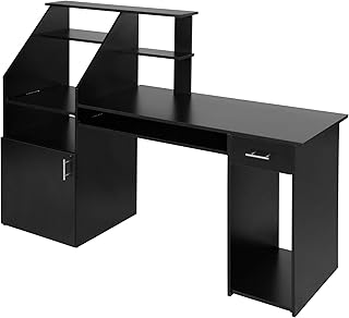 TecTake 800731 Computertisch mit Tastaturauszug, PC Schreibtisch mit Ablage- und Verstaumöglichkeiten, großes Towerfach, Bürotisch mit Schrank und Schublade - Diverse Farben - (Schwarz | Nr. 403175)