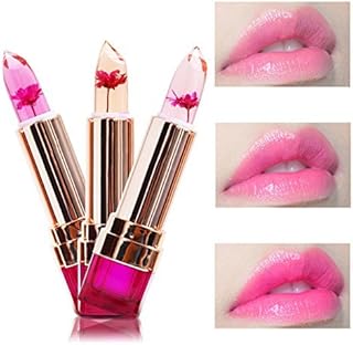 Wasserfester Lippenstift, Gelee, natürliche fruchtige Aromen, Fruchtaromen, Blüten-Lippenbalsam, Stick-Set, Temperaturänderung, Feuchtigkeitspflege für trockene Lippen, Blume im Inneren, 3 Stück