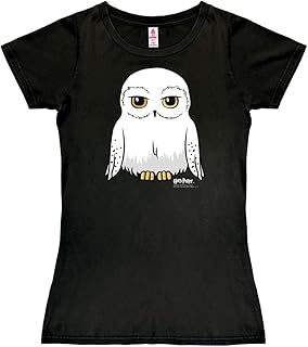 ️ Harry Potter Eule Hedwig T-Shirt für Damen I Motiv-Shirt schwarz kurzärmlig Rundhalskragen I Lizenziertes Originaldesign I hochwertiger Logo-Print I Baumwolle I Vintage