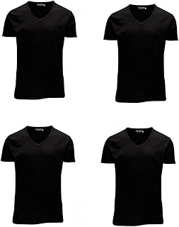 4er Pack Herren T-Shirt Basic V-Ausschnitt oder Rundhals einfarbig Slim Fit in weiß schwarz blau grau