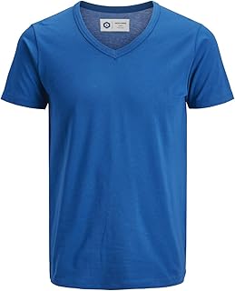 Herren Kurzarm T-Shirt V-Ausschnitt JJEBASAL Tee V-Neck Regular Fit S M L XL XXL 92% Baumwolle Stretch Einfarbig Blau Weiß Rot Grün Grau