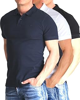 3er Pack Herren Basic Polo Shirt Slim Fit Kurzarm Schwarz Weiß Blau Polohemd Poloshirt