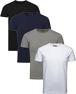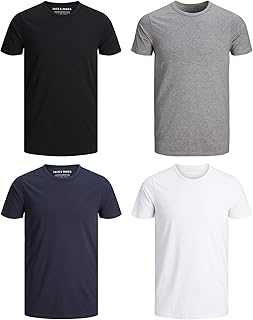 Herren T-Shirt 4er Pack JJEBASAL V-Ausschnitt Kurzarm Slim Fit Basic Tee Baumwolle Einfarbig S M L XL XXL