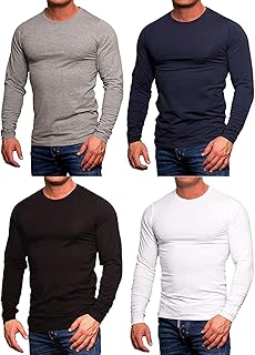Herren 4er Pack Basic Langarm Shirt Longsleeve Sweatshirt O-Neck Rundhals Weiß Schwarz Blau Grau