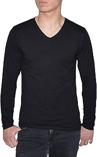 by Young & Rich Herren Longsleeve mit tiefem V Ausschnitt - Langarm Shirt V einfarbig Slim fit - Uni Basic Langarmshirt V Neck Shirt Stretch - Größe S bis 3XL