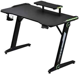 DlandHome Gaming Schreibtisch Computertisch, 120 * 60 cm Gaming Tisch/Workstation mit Display-Ständer und Kopfhörer-Halter, Schwarz & Schwarz