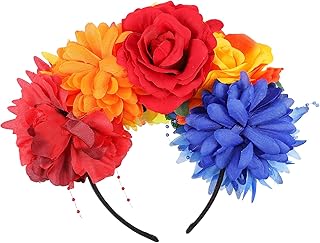 FRCOLOR Day of the Dead Stirnband Rose Blume Stirnband Blumenkrone mexikanische Kopfbedeckung Halloween Party Kostüm Kopfbedeckung