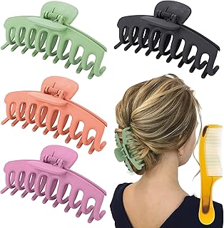 4 Stück Große Haarklammer, Kunststoff Haar Klaue Clips, Haarklammer Groß Damen für dicken Haaren, Rutschfeste Haarnadel, haarklammern mit Kamm für Frauen Damen Mädchen