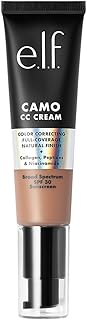 e.l.f. Camo CC Cream 30g Ditch your basic foundation! This color correcting cream is the only product you need to achieve a natural looking complexion but with full-coverage. A multitasking dream cream infused with collagen, peptides and niacinamide known to plump, hydrate and smooth the appearance of your skin while protecting with SPF 30. All e.l.f. products are cruelty free and vegan. This product is made in a Fair-Trade Certified factory. # 300176 How To Apply Camo CC Cream: Prep skin with Porelesss Putty Primer Apply 1-2 pumps of the CC Cream to clean skin using our e.l.f. Complexion Duo Brush to achieve an airbrushed finish.