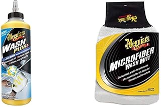 Meguiar's G25024EU Wash Plus+ Autoshampoo, 710ml & X3002EU Microfibre Wash Mitt Mikrofaser-Waschhandschuh